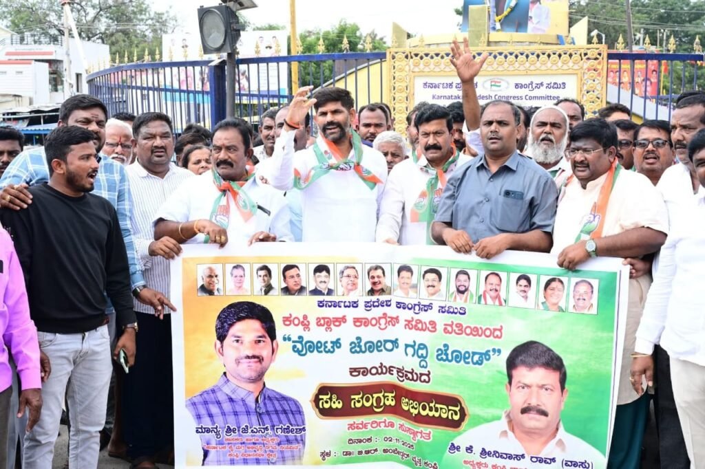 ‘ವೋಟ್ ಚೋರಿ ಗದ್ದಿ ಚೋಡ್, ಕಂಪ್ಲಿಯಲ್ಲಿ ಬ್ಲಾಕ್ ಕಾಂಗ್ರೇಸ್ ಸಮಿತಿಯಿಂದ ಮತಗಳ್ಳತನದ ವಿರುದ್ಧ ಸಹಿ ಸಂಗ್ರಹ ಅಭಿಯಾನ..