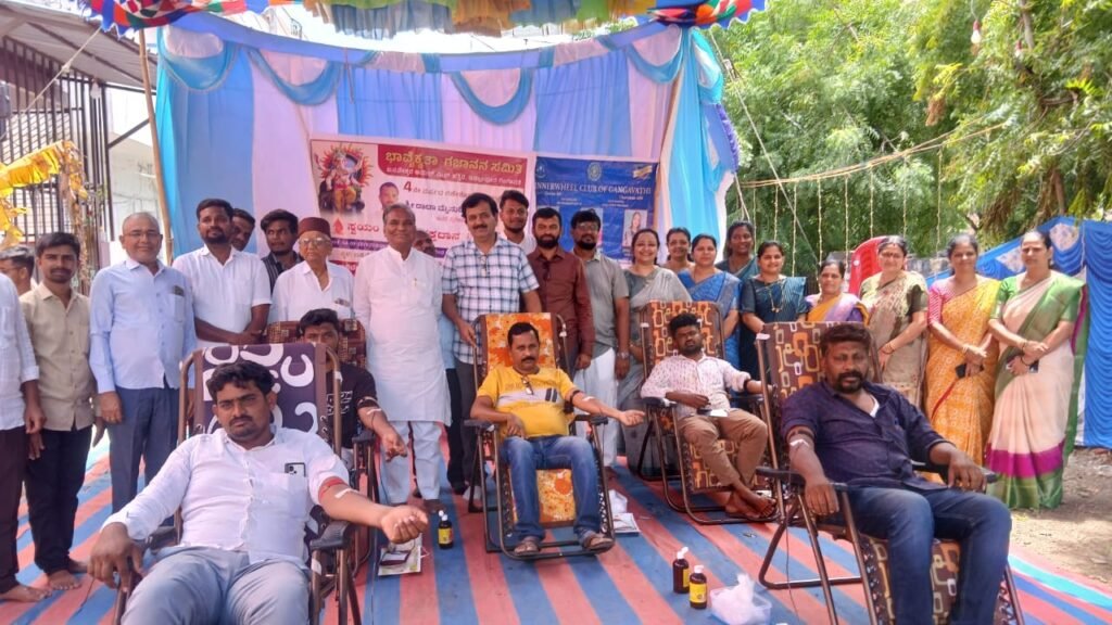 ಗಂಗಾವತಿ ನಗರದ 16ನೇ ವಾರ್ಡಿನ ಬಸವೇಶ್ವರ ಆಯಿಲ್ ಮಿಲ್ ಹತ್ತಿರ ಭಾವೈಕ್ಯತೆ ಗಜಾನನ ಸಮಿತಿ ಹಾಗೂ ಗೋಪಿ ರಕ್ತ ಭಂಡಾರ ಇವರ ಸಂಯುಕ್ತ ಆಶ್ರಯದಲ್ಲಿ ನಾಲ್ಕನೇ ವರ್ಷದ ಗಜಾನನೋತ್ಸವ ನಿಮಿತ್ಯ ರಕ್ತದಾನ ಶಿಬಿರದಲ್ಲಿ ಗಂಗಾವತಿಯ ನಿಕಟಪೂರ್ವ ಶಾಸಕರಾದ ಪರಣ್ಣ ಮುನವಳ್ಳಿ ಅವರು ಭಾಗವಹಿಸಿ ಮಾತನಾಡುತ್ತಾ ಭಾವೈಕ್ಯತ ಗಜಾನನ ಸಮಿತಿಯವರು ರಕ್ತದಾನ ಶಿಬಿರವನ್ನು ಹಮ್ಮಿಕೊಂಡಿದ್ದು ಅತ್ಯಂತ ಶ್ಲಾಘನೀಯ ಕಾರ್ಯ ತುರ್ತು ಸಂದರ್ಭದಲ್ಲಿ ಜೀವ ರಕ್ಷಕವಾದ ರಕ್ತ ಅತ್ಯವಶ್ಯಕವಾಗಿರುವುದರಿಂದ ಸುಮಾರು 60 ಯುವಕರು ರಕ್ತದಾನ ಮಾಡಿ ಇನ್ನೊಬ್ಬರ ಜೀವವನ್ನು ಉಳಿಸುವುದರ ಜೊತೆಗೆ ರಕ್ತದಾನದಿಂದ ದೇಹದಲ್ಲಿ ಪುನಃ ಹೊಸ ರಕ್ತ ಪಡೆಯುವುದರ ಜೊತೆಗೆ ತಮ್ಮ ಆರೋಗ್ಯವನ್ನು ಕಾಪಾಡಿಕೊಳ್ಳುತ್ತಿರುವುದು ಅತ್ಯಂತ ಸಂತೋಷಕರವಾದ ವಿಷಯ ಎಂದು ತಿಳಿಸಿದರು. ಈ ಸಂದರ್ಭದಲ್ಲಿ ಮುಖ್ಯ ಅತಿಥಿಗಳಾಗಿ ಹಿರಿಯರಾದ ಅಕ್ಕಿ ಕೊಟ್ರಪ್ಪ ದಣಿ , ಡಾ.ಎಸ್ ಬಿ ಹಂದ್ರಾಳ, ಭಾವೈಕ್ಯತೆ ಗಜಾನನ ಸಮಿತಿಯ ಅಧ್ಯಕ್ಷರಾದ ಅಕ್ಕಿ ಆನಂದ್, ನಗರಸಭಾ ಸದಸ್ಯ ರಾಜ್ ಮಹಮ್ಮದ್ , ಇನ್ನರ್ ವೀಲ್ ಕ್ಲಬ್ ನ ಕಾರ್ಯದರ್ಶಿ ಅಸ್ಮ ಫರೀನ್ , ಡಾ. ಅಬ್ದುಲ್ ಕರೀಂ , ಪತ್ರಕರ್ತರಾದ ಶ್ರೀನಿವಾಸ್ ಎಂ.ಜೆ, ಶರಣಯ್ಯ ಸ್ವಾಮಿ, ಮುಖ್ಯ ಅತಿಥಿಗಳಾಗಿ ಮಹಾಲಿಂಗಪ್ಪ ಬನ್ನಿಕೊಪ್ಪ, ಶರಣಪ್ಪ ಸಿದ್ದರಾಂಪುರ್, ಅಕ್ಕಿ ಪ್ರಕಾಶ್, ಮಹಾಂತೇಶ್ ಗಲಗಲಿ, ಆದೇಶ, ಹುಸೇನ್, ಗೌಸ್, ಸಾಧಿಕ್ ಮನಿಯರ್ ಇನ್ನು ಮುಂತಾದವರು ಉಪಸ್ಥಿತರಿದ್ದರು.