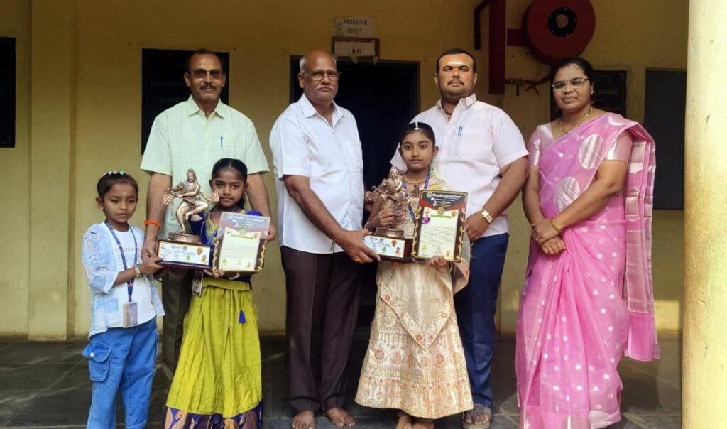 ಕಂಪ್ಲಿ: ಇತ್ತೀಚೆಗೆ ಹೈದರಾಬಾದಿನ ಗಚ್ಚಿಬೋಲಿ ಸ್ಟೇಡಿಯಂನಲ್ಲಿ ಭಾರತ ಆಟ್ರ‍್ಸ್ ಅಕಾಡೆಮಿ ಹಾಗೂ ತೆಲಂಗಾಣ ರ‍್ಕಾರದ ಸಂಯುಕ್ತಾಶ್ರಯದಲ್ಲಿ ನಡೆದ ಕೂಚುಪುಡಿ ಕಲಾವೈಭವಂ-2ರಲ್ಲಿ 5800 ಕೂಚುಪುಡಿ ಕಾಲವಿಧರೊಂದಿಗೆ ಭಾಗವಹಿಸಿದ ಕಂಪ್ಲಿ ಪಟ್ಟಣದ ಕಮ್ಮವಾರಿ ಸಂಘದ ವಿಜಯನಗರ ಆಂಗ್ಲ ಮಾಧ್ಯಮ ಶಾಲೆಯ ವಿದ್ಯರ‍್ಥಿಗಳಾದ ಖುಷಿ ವಿರಾಜ್, ಇಷಿತಾ ಹಾಗೂ ವಂದನಾ ಗಿನ್ನೀಸ್ ವಿಶ್ವ ದಾಖಲೆ ಪುಟವನ್ನು ಸೇರುವ ಮೂಲಕ ಶಾಲೆಯ ಕರ‍್ತಿಯನ್ನು ಹೆಚ್ಚಿಸಿದ್ದಾರೆ.ಗಿನ್ನೀಸ್ ವಿಶ್ವ ದಾಖಲೆ ಪುಟ ಸೇರಿದ ವಿದ್ಯರ‍್ಥಿಗಳನ್ನು ಅಭಿನಂದಿಸಿ ನೆನಪಿನ ಕಾಣಿಕೆಗಳನ್ನು ನೀಡಿ ಮಾತನಾಡಿದ ಶಾಲೆಯ ಅಧ್ಯಕ್ಷರಾದ ಕೆ.ಎಸ್.ಎಸ್.ವಿ.ಬಿ.ಸುಬ್ಬರಾವು ಬದುಕಿನಲ್ಲಿ ಗುರಿ ಅತ್ಯಂತ ಅವಶ್ಯಕವಾಗಿದೆ. ಮುಂದೆ ಗುರಿ, ಹಿಂದೆ ಗುರು ಇದ್ದಾಗ ಮಾತ್ರ ಉತ್ತಮ ಸಾಧನೆ ಮಾಡಲು ಸಾಧ್ಯ. ಇಂತಹ ಅಪರೂಪದ ಸಾಧನೆಯನ್ನು ನಮ್ಮ ಶಾಲೆಯ ವಿದ್ಯರ‍್ತಿಗಳು ಮಾಡಿರುವುದು ನಮ್ಮ ಶಾಲೆಗೆ,ತಾಲ್ಲೂಕಿಗೆ, ಜಿಲ್ಲೆಗೆ ಹೆಮ್ಮೆಯ ವಿಷಯವಾಗಿದೆ ಎಂದರು.ನಂತರ ಗಿನ್ನೀಸ್ ವಿಶ್ವ ದಾಖಲೆ ಪುಟ ಸೇರಿದ ವಿದ್ಯರ‍್ಥಿಗಳಾದ ಖುಷಿ ವಿರಾಜ್, ಇಷಿತಾ ಮತ್ತು ವಂದನಾ ಅವರನ್ನು ಶಾಲೆಯಿಂದ ಆತ್ಮೀಯವಾಗಿ ಸನ್ಮಾನಿಸಿ ಗೌರವಿಸಿದರು.ಈ ಸಂರ‍್ಭದಲ್ಲಿ ಶಾಲೆಯ ಮುಖ್ಯ ಶಿಕ್ಷಕರಾದ ಕೆ.ವಿಷ್ಣು,ಕಮ್ಮವಾರಿ ಸಂಘದ ಕರ‍್ಯರ‍್ಶಿ ಪಿ.ರಾಮಚಂದ್ರರಾವು,ಬೋಧಕ,ಬೋಧಕೇತರ ಸಿಬ್ಬಂದಿಗಳು ವಿದ್ಯಾರ್ಥಿಗಳು ಇದ್ದರು.
