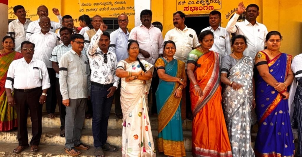 ಎನ್ಪಿಎಸ್ಗೆ ವಿರೋಧ: ಕಪ್ಪುಪಟ್ಟಿ ಧರಿಸಿ ಶಿಕ್ಷಕರ ಪಾಠ.
