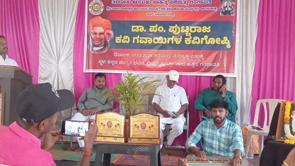 ಗಂಗಾವತಿ. ಬರೆದದ್ದು ಗೀಚಿದ್ದು ಕವನವಲ್ಲ ಒಬ್ಬ ಉತ್ತಮ ಕವಿಯಾಗಲು ಹೆಚ್ಚು ಅಧ್ಯಯನ ಶೀಲತೆಯನ್ನು ಹಾಗೂ ಜೀವನದ ಅನುಭವಗಳನ್ನು ಹಂಚಿಕೊಂಡಾಗ ಮಾತ್ರ ಅತ್ಯುತ್ತಮವಾದ ಕವಿಯಾಗಲು ಸಾಧ್ಯ ಎಂಬ ಅಭಿಪ್ರಾಯವನ್ನು ಸಾಹಿತ್ಯ ಹಾಗೂ ನಾಟಕ ರಚನೆಕಾರ ಎಸ್ ವಿ ಪಾಟೀಲ್ ಗುಂಡೂರ್ ಹೇಳಿದರು. ಅವರು ಶನಿವಾರದಂದು ಕನ್ನಡ ಜಾಗೃತಿ ಭವನ ದಲ್ಲಿ ತಾಲೂಕ ಚುಟುಕು ಸಾಹಿತ್ಯ ಪರಿಷತ್ ಗಂಗಾವತಿ ಶ್ರೀ ರಾಜರಾಜೇಶ್ವರಿ ಜನಪದ ಸಾಂಸ್ಕೃತಿಕ ಕಲಾಭಿವೃದ್ಧಿ ಸಂಘ ಅರಳಹಳ್ಳಿ ಇವರ ನೇತೃತ್ವದಲ್ಲಿ ಆಯೋಜಿಸಿದ ಡಾಕ್ಟರ್ ಪಂಡಿತ್ ಪುಟ್ಟರಾಜ ಕವಿ ಗವಾಯಿಗಳವರ ಕವಿಗೋಷ್ಠಿ ಸಮಾರಂಭದ ಅಧ್ಯಕ್ಷತೆಯನ್ನು ವಹಿಸಿ ಮಾತನಾಡಿದರು. ಭತ್ತದ ಕಣಜ ಎನಿಸಿದ ಗಂಗಾವತಿ ವಿಧಾನಸಭಾ ಕ್ಷೇತ್ರ ಭಾಗದಲ್ಲಿ ದಿನದಿಂದ ದಿನಕ್ಕೆ ಕವಿಗಳ ಸಂಖ್ಯೆ ಹೆಚ್ಚಾಗುತ್ತಿರುವುದು ಪ್ರಶಂಶಿಯ ಕಾರ್ಯವಾಗಿದೆ. ಕವಿಗೋಷ್ಠಿಯಲ್ಲಿ ಸುಮಾರು 24 ಅಧಿಕ ಕವಿಗಳು ತಮ್ಮದೇ ಆದಂತಹ ಕವನಗಳನ್ನು ರಚಿಸಿ ವಾಚನ ಮಾಡಿರುವುದು ಅದರಲ್ಲಿ ಹೊಸದಾಗಿ ಸೇರ್ಪಡೆಗೊಂಡ ಕವಿಗಳು ಸ್ವಲ್ಪ ಪ್ರಾಸಗಳನ್ನು ರಚಿಸಲು ಹೋಗಿ ತ್ರಾಸು ಅನುಭವಿಸಿದ್ದು ಕಾಣಬಹುದಾಗಿದೆ ಉಳಿದಂತೆ ಕವನಗಳನ್ನು ಗಮನಿಸಿದಾಗ ನೋವು ನಲಿವು ಪ್ರೀತಿ ಭಾಷಾಭಿಮಾನ ಇತರೆ ಅಂಶಗಳು ಅತ್ಯುತ್ತಮವಾಗಿ ಮೂಡಿ ಬಂದಿದೆ ಎಂದು ಹೇಳಿದರು.