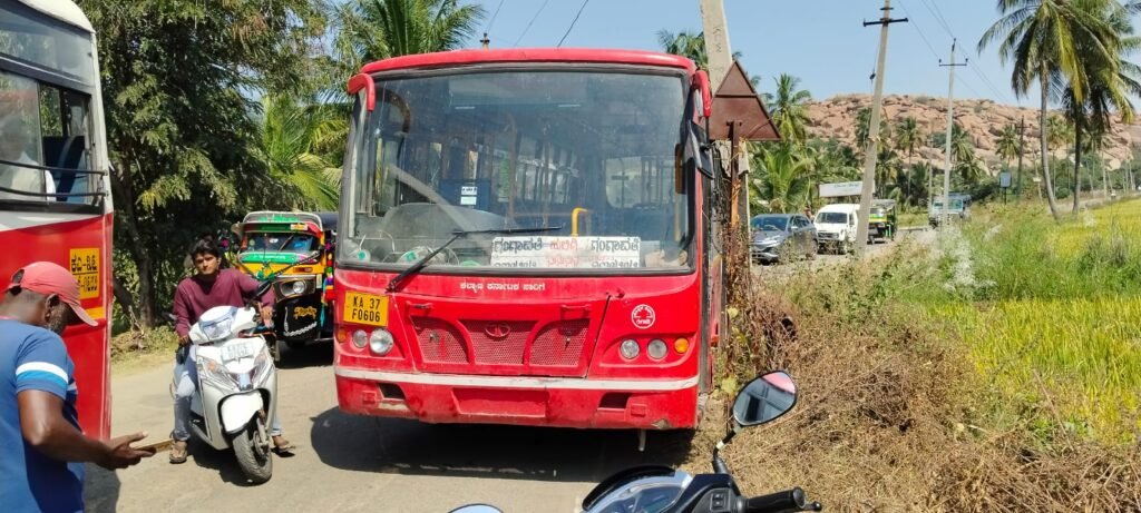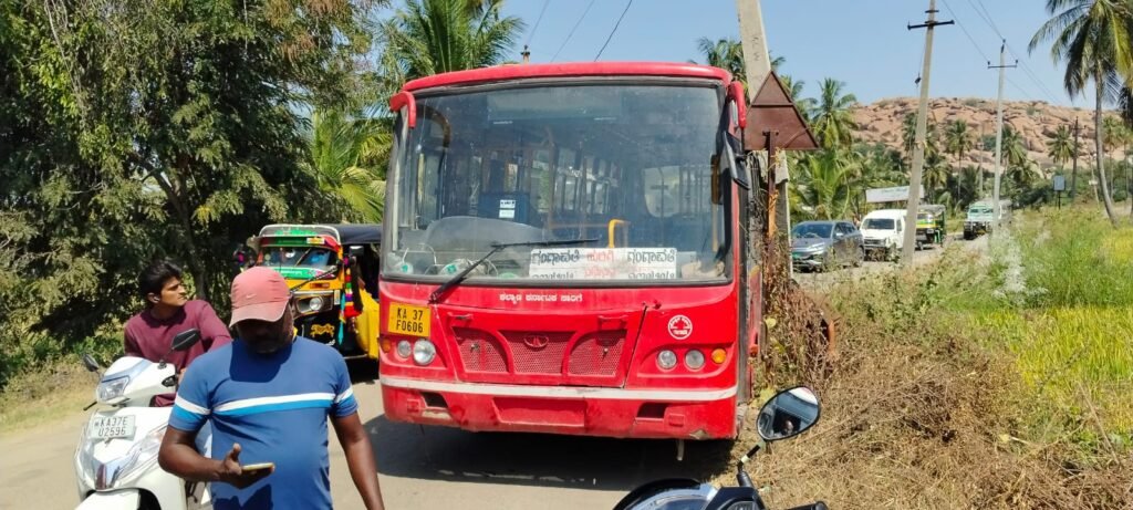 ಗಂಗಾವತಿಯಿಂದ ಹುಲಿಗಿ ಹೋಗುವ ಸಾರಿಗೆ ಬಸ್ ಅಪಘಾತ ಮಹಿಳೆಗೆ ಗಾಯ….