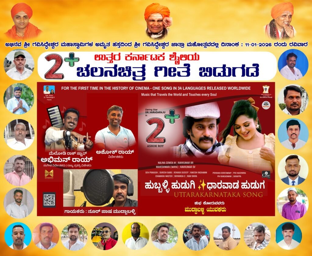 2 ಪ್ಲೆಸ್ ಕನ್ನಡ ಚಲನಚಿತ್ರದ ಧ್ವನಿ ಸುರುಳಿ ಕೊಪ್ಪಳದ ಗವಿಸಿದ್ದೇಶ್ವರ ಮಹಾಸ್ವಾಮಿಗಳಿಂದ ಬಿಡುಗಡೆ…