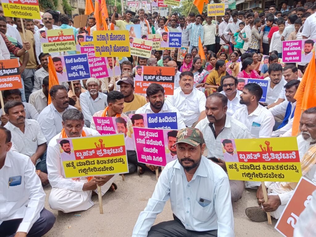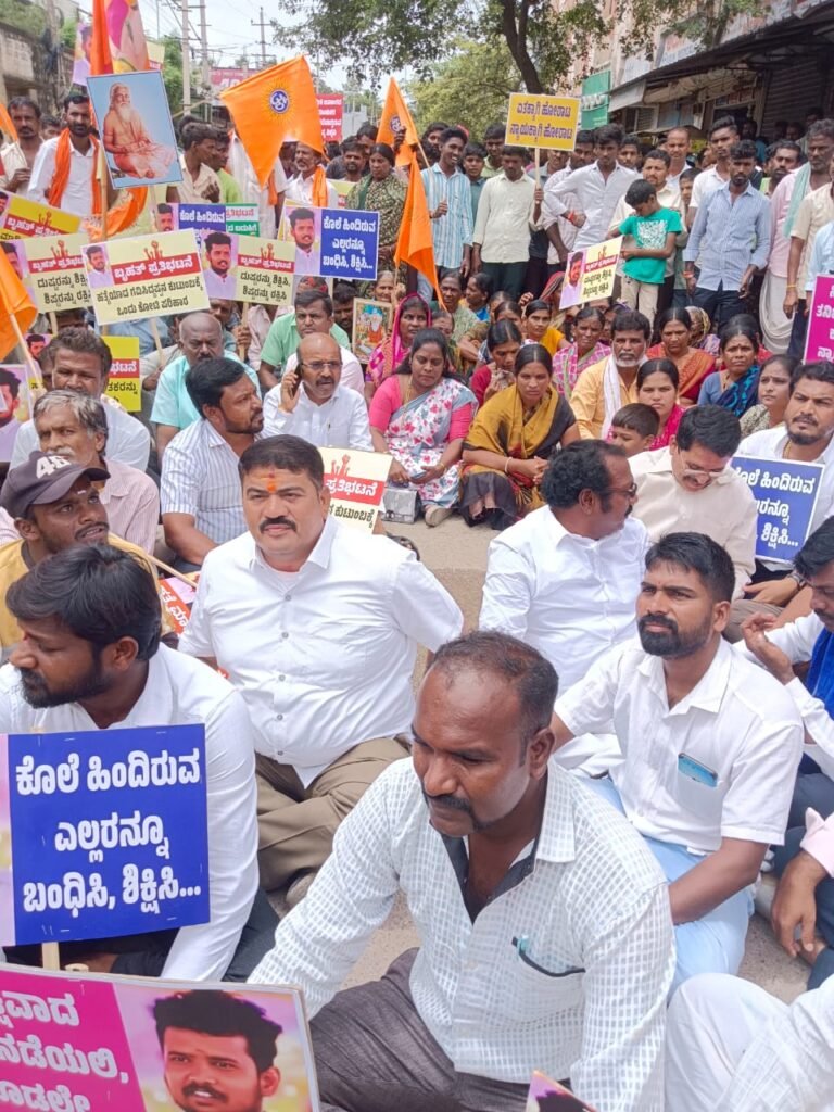 ಕೊಪ್ಪಳದಲ್ಲಿ ನಡೆದ ಬೃಹತ್ ಪ್ರತಿಭಟನೆಯಲ್ಲಿ ಕರ್ನಾಟಕ ರಕ್ಷಣಾ ವೇದಿಕೆಯ ಯುವಶಕ್ತಿ ಸಂಘಟನೆಯ ರಾಜ್ಯಾಧ್ಯಕ್ಷರಾಗಿರುವ ಶ್ರೀ ಆರ್ ವಿಜಯ್ ಕುಮಾರ್ ಅಣ್ಣನವರು ಹಾಗೂ ವಿಜಯನಗರ ಜಿಲ್ಲಾ ಕರವೇ ಸಂಘಟನೆಯ ಜಿಲ್ಲಾಧ್ಯಕ್ಷರಾಗಿರುವ ಭಾಸ್ಕರ ನಾಯಕ ಮತ್ತು ಜಿಲ್ಲಾ ಉಪಾಧ್ಯಕ್ಷರಾಗಿರುವ ನಾಗರಾಜ ಸೇರಿದಂತೆ ಕರವೇ ಸಂಘಟನೆಯ ರಾಜ್ಯ ಮಟ್ಟದ ಎಲ್ಲಾ ಪದಾಧಿಕಾರಿಗಳು ಪಾಲ್ಗೊಂಡು ಪ್ರತಿಭಟನೆಗೆ ಬೆಂಬಲ ವ್ಯಕ್ತಪಡಿಸಿದರು ಇದೆ ವೇಳೆ ಕರಬೇ ರಾಜ್ಯಾಧ್ಯಕ್ಷರಾಗಿರುವ ಶ್ರೀ ಆರ್ ವಿಜಯ್ ಕುಮಾರ್ ಅಣ್ಣನವರು ಹಾಗೂ ವಿಜಯನಗರ ಜಿಲ್ಲಾ ಕರವೇ ಜಿಲ್ಲಾಧ್ಯಕ್ಷರಾಗಿರುವ ಭಾಸ್ಕರ್ ನಾಯಕ ಅವರು ಮಾತನಾಡಿ ಕೊಪ್ಪಳದ ವಾಲ್ಮೀಕಿ ಸಮುದಾಯದ ಯುವಕ ಗವಿಸಿದ್ದಪ್ಪ ನಾಯಕ ಅವರನ್ನು ಕೊಲೆ ಮಾಡಿದವರಿಗೆ ಕಠಿಣ ಶಿಕ್ಷೆ ನೀಡಬೇಕು ಎಂದು ಒತ್ತಾಯಿಸಿದರು