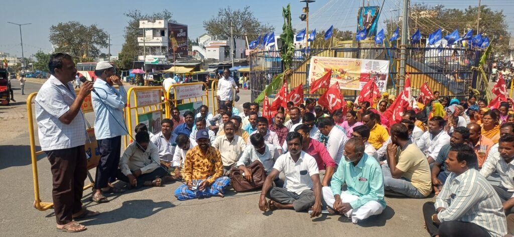 ಬಳ್ಳಾರಿ / ಕಂಪ್ಲಿ : ಅಖಿಲ ಭಾರತ ಸಾರ್ವತ್ರಿಕ ಮುಷ್ಕರ ಹಿನ್ನಲೆ ಸಾಮಾಜಿಕ, ಆರ್ಥಿಕ ವ್ಯವಸ್ಥೆ ಬುಡಮೇಲು ಮಾಡುತ್ತಿರುವ ಕೇಂದ್ರ ಸರ್ಕಾರ ನೀತಿಯನ್ನು ಖಂಡಿಸಿ, ಸಿಐಟಿಯು ನೇತೃತ್ವದಲ್ಲಿ ಕಾರ್ಮಿಕ ಸಂಘಟನೆಗಳ ಜಂಟಿ ಸಮಿತಿ, ಗ್ರಾಪಂ ನೌಕರರು, ಕಟ್ಟಡ ಕಾರ್ಮಿಕರು, ಅಂಗನವಾಡಿ, ಬಿಸಿಯೂಟ, ಹಮಾಲಿ ಕಾರ್ಮಿಕರು ಸಹಕಾರದೊಂದಿಗೆ ಪಟ್ಟಣದ ಅಂಬೇಡ್ಕರ್ ವೃತ್ತದಲ್ಲಿ ಗುರುವಾರ ಪ್ರತಿಭಟನೆ ನಡೆಸಿದರು. ನಂತರ ಸಿಐಟಿಯು ತಾಲೂಕು ಅಧ್ಯಕ್ಷ ಐ.ಹೊನ್ನೂರಸಾಬ್, ಕಾರ್ಯದರ್ಶಿ ಆರ್.ನಾಗರಾಜ ಮಾತನಾಡಿ, ಕೇಂದ್ರ ಸರ್ಕಾರ ವಿವಿಧ ಕಾರ್ಮಿಕರನ್ನು ಬದುಕಿಗೆ ಕಲ್ಲು ಹಾಕುವ ನಿಟ್ಟಿನಲ್ಲಿ ಹೊಸ ನೀತಿಯನ್ನು ತರಲು ಹೊರಟಿರುವುದು ದುರ್ಧೈವವಾಗಿದೆ. ಕೇಂದ್ರ ಸರ್ಕಾರ ತಂದಿರುವ ನಾಲ್ಕು ಕಾರ್ಮಿಕ ಸಂಹಿತೆಗಳು ರದ್ದಾಗಬೇಕು. ಶ್ರಮಶಕ್ತಿ ನೀತಿ ಬೇಡ. ಗ್ರಾಪಂಗಳಿಗೆ ಹೆಚ್ಚಿನ ಅನುದಾನ ನೀಡಬೇಕು. ಕಾರ್ಮಿಕರ ಕಾನೂನುಗಳನ್ನು ತಿದ್ದುಪಡಿ ಮಾಡಿ ಭೂಕಾಯ್ದೆಗಳನ್ನು ತಿದ್ದುಪಡಿಯೊಂದಿಗೆ ಸಾಮಾಜಿಕ, ಆರ್ಥಿಕ ವ್ಯವಸ್ಥೆಯನ್ನು ಬದಲಾಯಿಸಲು ಹುನ್ನಾರ ನಡೆಸಿದೆ. ಆದ್ದರಿಂದ ಕೂಡಲೇ ಕಾರ್ಮಿಕ ವಿರೋದ ನೀತಿಗಳನ್ನು ಕೈಬಿಡಬೇಕು. ಇಲ್ಲವಾದಲ್ಲಿ ಮುಂದಿನ ದಿನದಲ್ಲಿ ಹೋರಾಟವು ದೊಡ್ಡ ಮಟ್ಟದಲ್ಲಿ ನಡೆಯಲಿದೆ ಎಂದರು. ಈ ಸಂದರ್ಭದಲ್ಲಿ ಗ್ರಾಪಂ ನೌಕರರ ಸಂಘದ ರಾಜ್ಯ ಸಹ ಕಾರ್ಯದರ್ಶಿ ರಾಜಾಸಾಬ್ ನೆಲ್ಲುಡಿ, ತಾಲೂಕು ಅಧ್ಯಕ್ಷ ಜಡೆಯ್ಯಸ್ವಾಮಿ, ಪ್ರಧಾನ ಕಾರ್ಯದರ್ಶಿ ಚಾಂದ್‌ಬಾಷಾ, ಖಜಾಂಚಿ ಚಂದ್ರಶೇಖರ, ಮುಖಂಡರಾದ ಬಂಡಿ ಬಸವರಾಜ, ಶಾಂತಪ್ಪ, ಆರ್.ಏಸಯ್ಯ, ಹುಸೇನಿ, ಅನುರಾಧ, ತಿಪ್ಪಮ್ಮ, ಶಾಂತಮ್ಮ ಸೇರಿದಂತೆ ಅನೇಕರಿದ್ದರು.