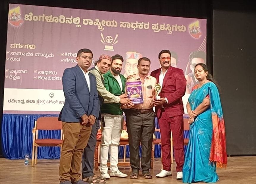ವರದಿಗಾರರು ಕಲಾವಿದರು ಐತಿಹಾಸಿಕ ಮಾರ್ಗದರ್ಶಕ ಗಣ್ಯ ವ್ಯಕ್ತಿಗಳ ಆಪ್ತ ಸಹಾಯಕ ಯವರಿಗೆ. ಅಕ್ಟೋಬರ 13 ಸೋಮವಾರದಂದು ಗ್ಲೋಬಲ್ ಎಂಟರ್ಪ್ರೈಸಸ್ ಧೀರಾ ಡಿಜಿಟಲ್ ಮಾರ್ಕೆಟಿಂಗ್ ಮೀಡಿಯಾ ಏಜೆನ್ಸಿ ಚೆನ್ನೈಸಂಸ್ಥೆಯಿಂದ ಬೆಂಗಳೂರಿನ ರವೀಂದ್ರ ಕಲಾಕ್ಷೇತ್ರದಲ್ಲಿ.ಪತ್ರಿಕೋದ್ಯಮ ರಂಗಭೂಮಿ ಐತಿಹಾಸಿಕ ಮಾರ್ಗದರ್ಶಕ ಸಂಘ ಸಂಸ್ಥೆಗಳ ಪ್ರತಿನಿಧಿ ಕನ್ನಡಪರ ಶರಣರ ಸೇವೆ ಸಂಘಟನೆಗಾಗಿ ವರ್ಷದ ರಾಷ್ಟ್ರೀಯ ಸಾಧಕ 2025.ರ ಪ್ರಶಸ್ತಿ ನೀಡಿ ಗೌರವಿಸಲಾಯಿತು ಈ ಸಂದರ್ಭದಲ್ಲಿ ಸಾರ್ವಜನಿಕ ಸಂಪರ್ಕ ಅಧಿಕಾರಿ ಶಾಂತಿ ಹಿಂದಿ ಚಲನಚಿತ್ರ ನಟ ಧ್ಯಾನಿ ಕನಿಕರಾಜ್. ಚಲನಚಿತ್ರ ಹಾಸ್ಯ ಕಲಾವಿದ ಮೈಸೂರ್ ರಮಾನಂದ. ಮಂಜುಳಾ. ಸೂರ್ಯ. ಅಬ್ದುಲ್ ರಜಾಕ್ ಟೇಲರ್. ಶ್ರೀ ಮಲ್ಲಯ್ಯ ಕೋಮಾರಿ . ಶ್ರೀದೇವಿ ಕೋಮಾರಿಇನ್ನಿತರರು ಉಪಸ್ಥಿತರಿದ್ದರು. ಐದು ದಶಕಗಳಿಂದ ವರದಿಗಾರ ರಂಗಭೂಮಿ ಸಿನಿಮಾ ಐತಿಹಾಸಿಕ ಮಾರ್ಗದರ್ಶಕ ಗಣ್ಯ ವ್ಯಕ್ತಿಗಳ ಆಪ್ತ ಸಹಾಯಕ ಸಮಾಜ ಸೇವೆ ಸಾಂಸ್ಕೃತಿಕ ಕ್ಷೇತ್ರ ಸೇರಿದಂತೆ ವಿವಿಧ ಕ್ಷೇತ್ರಗಳಲ್ಲಿ ಕಾರ್ಯನಿರ್ವಹಿಸಿ ಅನೇಕ ಪ್ರಶಸ್ತಿಗಳನ್ನು ಪಡೆದ ಶ್ರೀ ಡಾ. ಚನ್ನಬಸವ ಕೊಟಗಿ ಮತ್ತೊಂದು ಪ್ರಶಸ್ತಿಯ ಗರಿ ಮೂಡಿ ಬಂದಿದೆ.