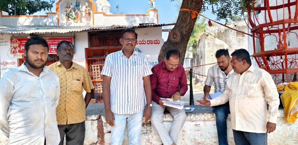 ಕಂಪ್ಲಿ ಶಿಬಿರದಿನ್ನಿಯಲ್ಲಿ ದೇವಸ್ಥಾನ ಸ್ಥಳಕ್ಕೆ ಭೇಟಿ ನೀಡಿ ಪರಿಶೀಲಿಸಿದ ಕಂದಾಯಾಧಿಕಾರಿಗಳು.