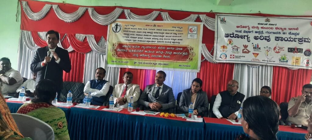 ಗಂಗಾವತಿ. ತಾಲೂಕು ಕಾನೂನು ಸೇವಗಳ ಸೇವಾ ಸಮಿತಿ ವಕೀಲರ ಸಂಘ ಕಂದಾಯ ಇಲಾಖೆ ಮಹಿಳಾ ಮತ್ತು ಅಭಿವೃದ್ಧಿ ಕಲ್ಯಾಣ ಇಲಾಖೆ ಕರ್ನಾಟಕ ರಾಜ್ಯ ಮಹಿಳಾ ಅಭಿವೃದ್ಧಿ ನಿಗಮ ದೇವದಾಸಿ ಪುನರ್ವಸತಿ ಯೋಜನೆ ಹಾಗೂ ಚಿಕ್ಕ ಜಂತಕಲ್ ಗ್ರಾಮ ಪಂಚಾಯತಿ ಸಂಯುಕ್ತ ಆಶಯದಲ್ಲಿ ಖಾಯಂ ಜನತಾ ನ್ಯಾಯಾಲಯ ಕುರಿತು ಹಾಗೂ ಮಾಜಿ ದೇವದಾಸಿ ಮಹಿಳೆಯರಿಗೆ ಕಾನೂನು ಅರಿವು ಕಾರ್ಯಕ್ರಮ ಮತ್ತು ಆರೋಗ್ಯ ತಪಾಸಣಾ ಶಿಬಿರ ನಡೆಯಿತು.