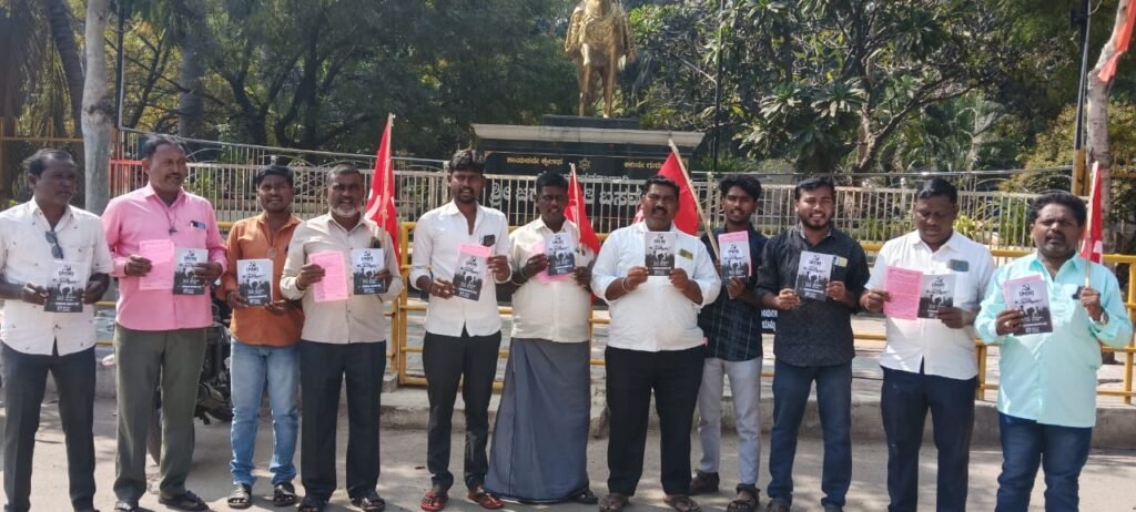 ಮಾತನಾಡಿದ ಪಕ್ಷದ ಜಿಲ್ಲಾ ಕಾರ್ಯದರ್ಶಿ ಮಂಡಳಿ ಸದಸ್ಯರಾದ ಕಾಂ. ಮರಕುಂಬಿ ಬಸವರಾಜ್ ಮಾತನಾಡಿ ರಾಷ್ಟ್ರೀಯ ಗ್ರಾಮೀಣ ಉದ್ಯೋಗ ಭರವಸೆ ಕಾಯಿದೆ ನಗರ ಪ್ರದೇಶದಲ್ಲಿ ಜಾರಿಮಾಡಲು, 200 ದಿವಸ ಕೆಲಸ 600/- ರೂ. ಕೂಲಿಗಾಗಿ ಮತ್ತು ಸರಕಾರಿ ಭೂಮಿಯಲ್ಲಿ ಸಾಗುವಳಿ ಮಾಡುವವರಿಗೆ ಪಟ್ಟಾ ನೀಡಲು ಒತ್ತಾಯಿಸಿ, ನಗರ ಮತ್ತು ಗ್ರಾಮೀಣ ಪ್ರದೇಶದಲ್ಲಿ ಮೂಲಭೂತ ಸೌಕರ್ಯಗಳನ್ನು ಒದಗಿಸಲು ಹಾಗೂ ಪ್ರತಿ ಮನೆ-ಮನೆಗೆ ಭೇಟಿ, ಸಹಿ ಸಂಗ್ರಹ ಮತ್ತು ನಿಧಿ ಸಂಗ್ರಹ ದಿನಾಂಕ 21-12-2025 ರಂದು ಬೆಂಗಳೂರಲ್ಲಿ ಬೃಹತ್ ಪ್ರತಿಭಟನೆ ಮತ್ತು ಬಹಿರಂಗ ಸಭೆ ಜರುಗಲಿದೆ ಇಂದು ತಿಳಿಸಿದರು ನಂತರ ಮಾತನಾಡಿದ ಪಕ್ಷದ ತಾಲೂಕ ಕಾರ್ಯದರ್ಶಿ ಕಾಂ . ಕೆ ಹುಸೇನಪ್ಪ ಮಾತನಾಡಿ ಉದ್ಯೋಗ ಭರವಸೆ ಕಾಯಿದೆ ಅಡಿಯಲ್ಲಿ 200 ದಿವಸ ಕೆಲಸ 600/- ರೂ. ಕೂಲಿ ಕೊಡಬೇಕು ಮತ್ತು ಸಮರ್ಪಕವಾಗಿ ಜಾರಿಗೊಳಿಸಬೇಕು. ಮತ್ತು ನಗರಸಭೆ, ಪಟ್ಟಣ ಪಂಚಾಯತಿ ವ್ಯಾಪ್ತಿಯಲ್ಲಿ ವಿಸ್ತರಣೆ ಮಾಡಬೇಕು. ನಿರುದ್ಯೋಗಿ ಯುವಕ-ಯುವತಿಯರಿಗೆ ಉದ್ಯೋಗ ನೀಡಬೇಕೆಂದು ಆಗ್ರಹಿಸಿ ಬೆಂಗಳೂರಿನ ನಡೆಯುತ್ತಿರುವ ರಾಜ್ಯಮಟ್ಟದ ಜನದನ ರ್ಯಾಲಿಯಲ್ಲಿ ಜಿಲ್ಲೆಯ ಕೂಲಿಕಾರರು, ಕಾರ್ಮಿಕ ರು, ರೈತರು, ವಿದ್ಯಾರ್ಥಿಗಳು ಹೆಚ್ಚಿನ ಸಂಖ್ಯಾಯಲ್ಲಿ ಭಾಗವಹಿಸಿ ಸರ್ಕಾರ ಕ್ಕೆ ಬಿಸಿ ಮುಟ್ಟಿಸುವ ಜೊತೆಗೆ ಹಾಕ್ಕೋತ್ತಾಯಗಳು ಈಡೇರಿಸುವಂತೆ ಒತ್ತಾಯಿಸಿದರು .*ಬೇಡಿಕೆಗಳು:*1) ಉದ್ಯೋಗ ಭರವಸೆ ಕಾಯಿದೆ ಅಡಿಯಲ್ಲಿ 200 ದಿವಸ ಕೆಲಸ 600/- ರೂ. ಕೂಲಿ ಕೊಡಬೇಕು ಮತ್ತು ಸಮರ್ಪಕವಾಗಿ ಜಾರಿಗೊಳಿಸಬೇಕು. ಮತ್ತು ನಗರಸಭೆ, ಪಟ್ಟಣ ಪಂಚಾಯತಿ ವ್ಯಾಪ್ತಿಯಲ್ಲಿ ವಿಸ್ತರಣೆ ಮಾಡಬೇಕು. ನಿರುದ್ಯೋಗಿ ಯುವಕ-ಯುವತಿಯರಿಗೆ ಉದ್ಯೋಗ ನೀಡಬೇಕು.2) ಗಂಗಾವತಿ ನಗರ ಪ್ರದೇಶ ಮತ್ತು ತಾಲೂಕಿನ ಆನೇಗುಂದಿ, ಚಿಕ್ಕಜಂತಕಲ್, ಚಿಕ್ಕಬೆಣಕಲ್‌, ಹೊಸ್ಕೆರಾ, ಕೇಸರಹಟ್ಟಿ, ವೆಂಕಟಗಿರಿ, ವಡ್ಡರಹಟ್ಟಿ, ಹೇರೂರು, ಶ್ರೀರಾಮನಗರ, ಮರಳಿ; ಸಣಾಪುರ, ಸಂಗಾಪುರ, ಮಲ್ಲಾಪುರ, ಢಣಾಪುರ, ಹಣವಾಳ, ಆಗೋಲಿ, ಬಸಾಪಟ್ಟಣ, ಜಂಗಮರ ಕಲ್ಗುಡಿ ಪಂಚಾಯತಿ ವ್ಯಾಪ್ತಿಯಲ್ಲಿ ರಸ್ತೆ, ಸಿಸಿ ರಸ್ತೆ, ಚರಂಡಿ, ಕುಡಿಯುವ ನೀರು ಮತ್ತು ಸಮರ್ಪಕವಾಗಿ ಉದ್ಯೋಗ ಖಾತ್ರಿ ಕೆಲಸ ನೀಡಬೇಕು.ನಗರ ಮತ್ತು ಗ್ರಾಮೀಣ ಪ್ರದೇಶಗಳಲ್ಲಿ ಸರಕಾರಿ ಭೂಮಿ ಸಾಗುವಳಿದಾರರಿಗೆ ಭೂಮಿ ಮಂಜೂರು ಮಾಡಬೇಕು. ನಗರ ಪ್ರದೇಶ ಮತ್ತು ಗ್ರಾಮ ಪಂಚಾಯತಿಗಳಲ್ಲಿ ಕೆಲಸ ಮಾಡುವ ಸಿಬ್ಬಂದಿಗಳನ್ನು ಖಾಯಂ ಮಾಡಬೇಕು.3455) ನಗರ ಪ್ರದೇಶದ ಎಲ್ಲಾ ವಾರ್ಡುಗಳಲ್ಲಿ ನಿವೇಶನ ರಹಿತರ ಪಟ್ಟಿ ಮಾಡಿ ನಿವೇಶನವನ್ನು ಒದಗಿಸಬೇಕು. ಮತ್ತು ನಗರ ಪ್ರಮುಖ ರಸ್ತೆಗಳಲ್ಲಿ ಗುಂಡಿಗಳನ್ನು ಮುಚ್ಚಿ, ಎಲ್ಲಾ ರಸ್ತೆಗಳಿಗೆ ಡಾಂಬರಿಕರಣ ಮಾಡಬೇಕು.6) ಸ್ಟೀಮ್ ನೌಕರರನ್ನು ಖಾಯಂ ಮಾಡಬೇಕು. ಕಾರ್ಮಿಕರು, ಕೂಲಿ ಕಾರ್ಮಿಕರಿಗೆ ಮನೆ ನಿವೇಶನ ನೀಡಬೇಕು.7) ನಗರ ಪ್ರದೇಶದಲ್ಲಿ ಎಲ್ಲಾ ಉದ್ಯಾವನ (ಪಾರ್ಕ್) ಗಳನ್ನು ಅಭಿವೃದ್ಧಿಪಡಿಸಬೇಕು.8) ನಗರ ಮತ್ತು ಗ್ರಾಮೀಣ ಪ್ರದೇಶದ ಎಲ್ಲಾ ಸರ್ಕಾರಿ ಶಾಲೆ, ಕಾಲೇಜುಗಳಿಗೆ ಮೂಲಭೂತ ಸೌಕರ್ಯ ಮತ್ತು ಶಿಕ್ಷಕರು, ಉಪನ್ಯಾಸಕರನ್ನು ಒದಗಿಸಬೇಕು.9) ರೈತರು ಬೆಳೆದ ಬೆಳೆಗೆ ಸ್ವಾಮಿನಾಥನ್ ವರದಿ ಪ್ರಕಾರ ಬೆಂಬಲ ಬೆಲೆ ನೀಡಬೇಕು. ಮುಂಚಿತವಾಗಿ ಖರೀದಿ ಕೇಂದ್ರ ಪ್ರಾರಂಭ ಮಾಡಬೇಕು.ಈ ಸಂದರ್ಭದಲ್ಲಿ ಮಂಜುನಾಥ್ ಡಗ್ಗಿ, ಮರುನಾಗಪ್ಪ ಡಗ್ಗಿ, ಎ ರಮೇಶ್,ಶಿವಣ್ಣ ಬೆನಕಲ್, ಶ್ರೀನಿವಾಸ್ ಹೊಸಳ್ಳಿ, ಮುತ್ತಣ್ಣ ದಸನಲ್,ಬಾಲ