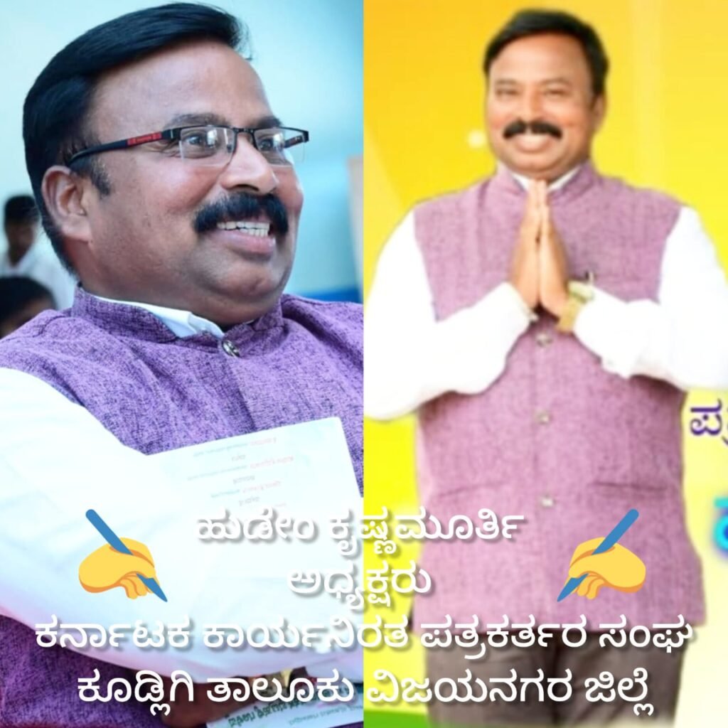 ಕ.ಕಾ.ಪ.ಸಂಘ ನೂತನ ಕೂಡ್ಲಿಗಿ ತಾಲೂಕಾಧ್ಯಕ್ಷರಾಗಿ ಅಯ್ಕೆಯಾದ , ಹುಡೇಂ ಕೃಷ್ಣಮೂರ್ತಿಯವರಿಗೆ ಸಮಾನ ಮನಸ್ಕ ಪತ್ರಕರ್ತರಿಂದ ಅಭಿನಂದನೆಗಳು…