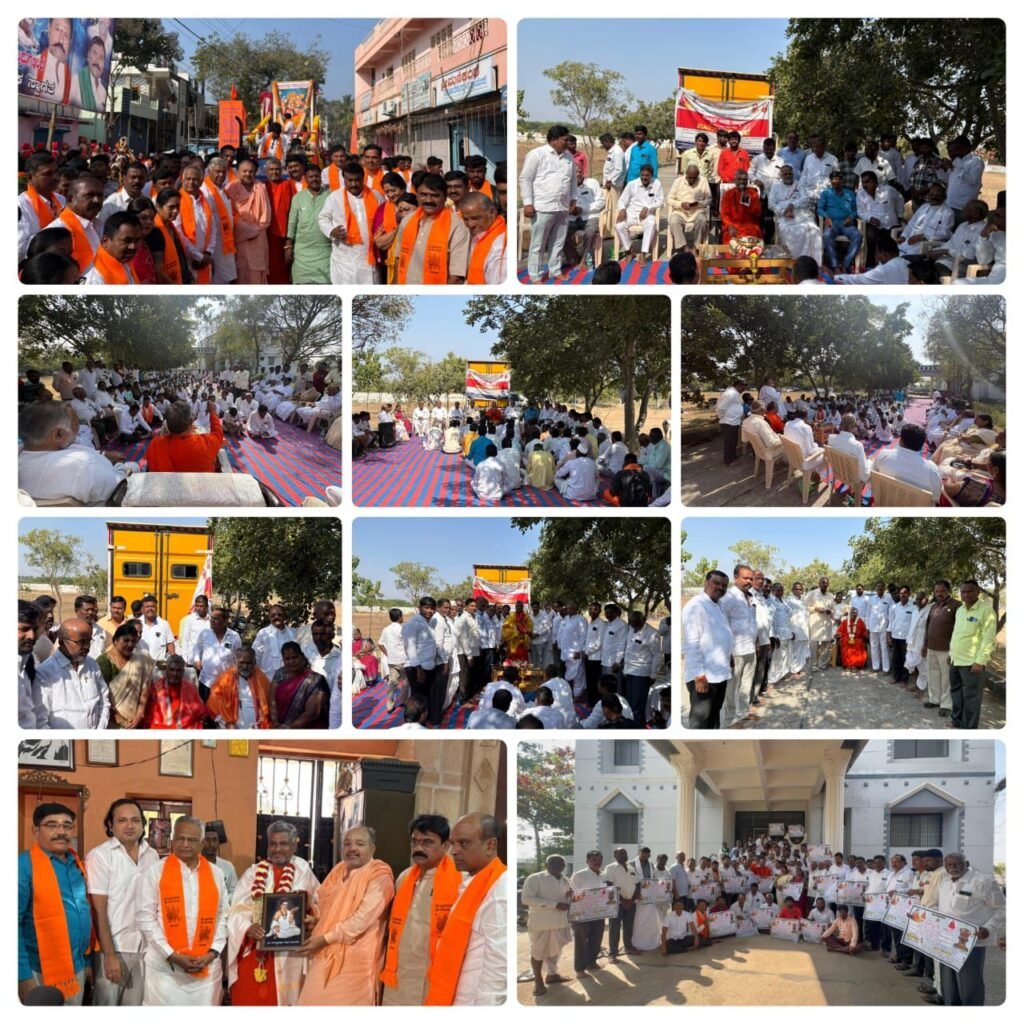 ಜಗದ್ಗುರು ಶ್ರೀ ಡಾ. ವಾಲ್ಮೀಕಿ ಪ್ರಸನ್ನಾನಂದ ಮಹಾಸ್ವಾಮಿಜಿಯವರು ಕೊಪ್ಪಳ ಜಿಲ್ಲಾ ಮಟ್ಟದ ಜನಜಾಗೃತಿ ಸಭೆ ಹಾಗೂ ಮಹರ್ಷಿ ವಾಲ್ಮೀಕಿ ಜಾತ್ರೆ 2026 ಪೂರ್ವಭಾವಿ ಸಭೆಯ ದಿವ್ಯ ಸಾನಿಧ್ಯ ವಹಿಸಿ ಆಶೀರ್ವಚನ ನೀಡಿದರು**ಜಿಲ್ಲಾ ಮಟ್ಟದ ಜನಜಾಗೃತಿ ಸಭೆಯನ್ನು ಉದ್ದೇಶಿಸಿ ಆಶೀವ೯ಚನ ನೀಡಿದ ಪೂಜ್ಯರು ಕೊಪ್ಪಳ ಜಿಲ್ಲೆಯ ಎಲ್ಲಾ ತಾಲ್ಲೂಕಿನ ಸಮಾಜದ ಸ್ಥಳೀಯ ಸಮಸ್ಯೆ ಹಾಗೂ ಸಮಾಜದ ಜ್ವಲಂತ ಸಮಸ್ಯೆಗಳನ್ನು ಸರ್ಕಾರದ ಗಮನಕ್ಕೆ ತರುವ ಹಿನ್ನೆಲೆಯಲ್ಲಿ ಹಾಗೂ ಐತಿಹಾಸಿಕ ಎಂಟನೇ ವರ್ಷದ ಶ್ರೀ ಮಹರ್ಷಿ ವಾಲ್ಮೀಕಿ ಜಾತ್ರಾ ಮಹೋತ್ಸವದಲ್ಲಿ ಮಹತ್ವದ ನಿರ್ಣಯ ಕೈಗೊಂಡು ಸರ್ಕಾರಕ್ಕೆ ಶೀಘ್ರವೇ ಬೇಡಿಕೆ ಈಡೇರಿಸುವಂತೆ ಆಗ್ರಹಿಸುವ ಹಿನ್ನೆಲೆಯಲ್ಲಿ ಕೊಪ್ಪಳ ಜಿಲ್ಲೆಯ ಸಮಸ್ತ ಸಮುದಾಯದ ಮುಖಂಡರೊಂದಿಗೆ ಚರ್ಚಿಸಿ ನಿರ್ಣಯ ಕೈಗೊಂಡರು**ಸಭೆಯಲ್ಲಿ ಕೊಪ್ಪಳ ಜಿಲ್ಲೆಯ ಕೊಪ್ಪಳ ಯಲಬುರ್ಗಾ ಕುಷ್ಟಗಿ ಕಾರಟಗಿ ಕುಕನೂರ ಕನಕಗಿರಿ ಗಂಗಾವತಿ ತಾಲೂಕುಗಳ ಸಮಸ್ತ ಸಮುದಾಯದ ಮುಖಂಡರು ಶ್ರೀಮಠದ ಧರ್ಮದರ್ಶಿಗಳು, ಜಿಲ್ಲಾದ್ಯಕ್ಷರು, ತಾಲ್ಲೂಕು ಅಧ್ಯಕ್ಷರು, ಶ್ರೀ ಮಠದ ಪ್ರತಿನಿಧಿಗಳು, ಜಾತ್ರಾ ಸಮಿತಿ ಅಧ್ಯಕ್ಷರು, ವಿ.ಎಸ್.ಎಸ್. ಪದಾಧಿಕಾರಿಗಳು, ನಿವೃತ್ತ ಅಧಿಕಾರಿಗಳು, ನೌಕರರು, ವಿವಿಧ ಸಂಘಟನೆಯ ಅಧ್ಯಕ್ಷರು ಹಾಗೂ ಪದಾಧಿಕಾರಿಗಳು, ಮಹಿಳಾ ಸಂಘಟನೆಯ ಅಧ್ಯಕ್ಷರು ಹಾಗೂ ಪದಾಧಿಕಾರಿಗಳು, ಯುವಕರು ಕೊಪ್ಪಳ ಜಿಲ್ಲೆಯ ಸಮಸ್ತ. ಮುಖಂಡರು ಉಪಸ್ಥಿದ್ದರು