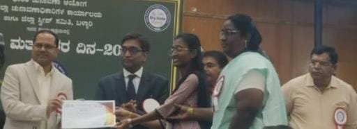 ಪ್ರಥಮ ದರ್ಜೆ ಕಾಲೇಜಿನ ವಿದ್ಯಾರ್ಥಿನಿ ಬಿ.ಸುಷ್ಮಾಗೆ ಜಿಲ್ಲಾಧಿಕಾರಿ ರವರಿಂದ ಪ್ರಶಸ್ತಿ ಪತ್ರ ವಿತರಣೆ..