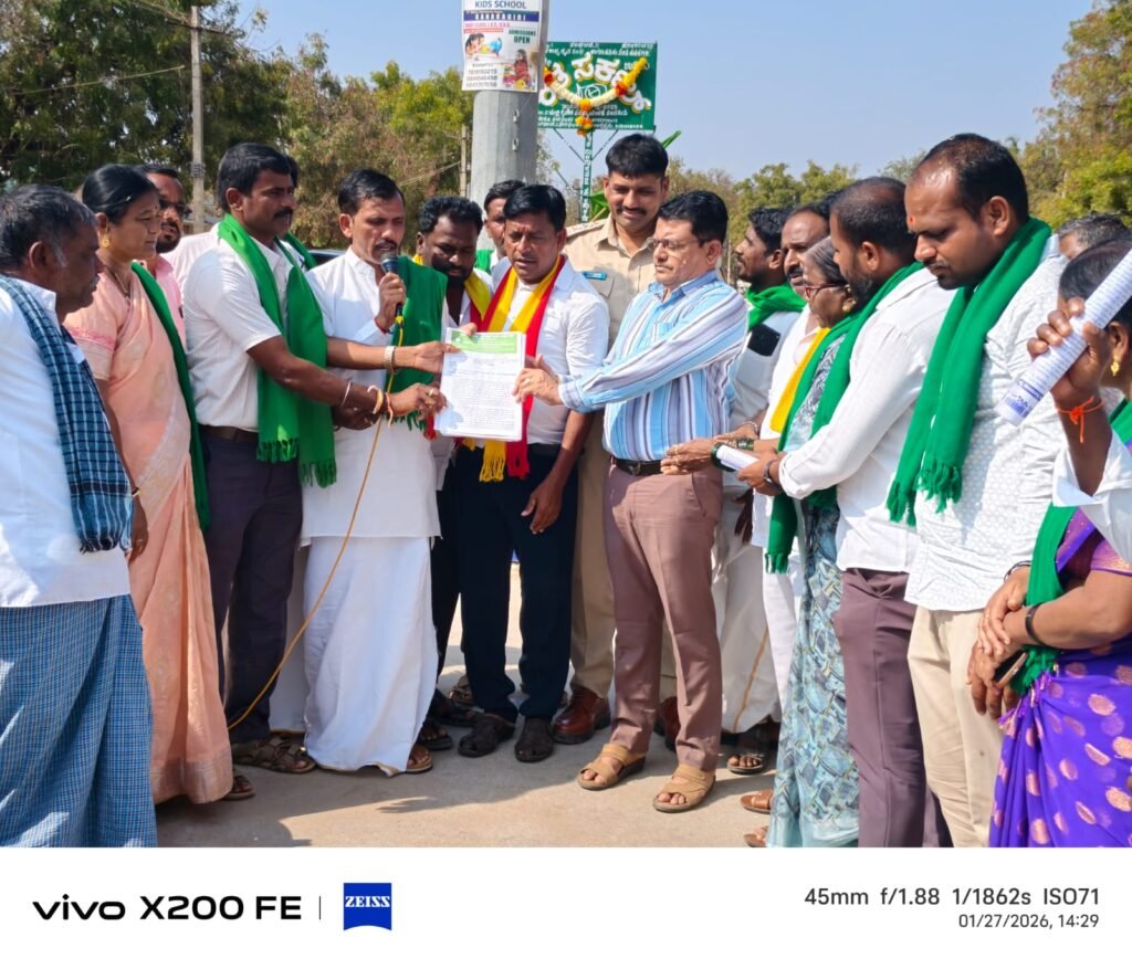 ನಂತರ ಕನ್ನಡಪರ ಮತ್ತು ರೈತ ಸಂಘಟನೆಯ ಕಾರ್ಯಕರ್ತರು ವಿದ್ಯಾರ್ಥಿಗಳು ರೈತಾಪಿ ಜನ ಊರಿನ ಜನ ಸಾಮಾನ್ಯರು ಹಾಗೂ ವಿವಿಧ ಸಂಘ ಸಂಸ್ಥೆಗಳು ಸೇರಿ ಮಾನ್ಯ ತಾಲೂಕು ಆಡಳಿತ ಅಧಿಕಾರಿಗಳಿಗೆ ಮನವಿ ಸಲ್ಲಿಸಿದ್ದಾರೆ.