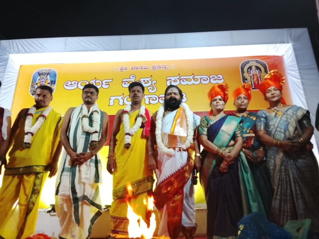 ಗಂಗಾವತಿ. ನಗರದ ಆರ್ಯವೈಶ್ಯ ಸಮಾಜ. ಶ್ರೀ ವಾಸವಿ ಮಹಿಳಾ ಮಂಡಳಿ. ವಾಸವಿ ಯುವಜನ ಸಂಘ ಇವರ ನೇತೃತ್ವದಲ್ಲಿ ರವಿವಾರದಂದು ಜರುಗಿದ ಶ್ರೀ ಕನ್ನಿಕಾ ಪರಮೇಶ್ವರಿ ಜಯಂತೋತ್ಸವದ ಪ್ರಯುಕ್ತ ಸಂಜೆ ಜರುಗಿದ ಶ್ರೀ ವಾಸವಿ ಮಾತೆಯ ಭವ್ಯ ಮೆರವಣಿಗೆ ನಾಡಿನ ಸಾಂಸ್ಕೃತಿಕ ಅನಾವರಣಕ್ಕೆ ಸಾಕ್ಷಿಯಾಗಿತ್ತು. ಸಕಲ ವಾದ್ಯ ವೈಭವ ಬೆಂಗಳೂರಿನ ನೆಲ್ದಾವ್ ಕಲಾ ಕೇಂದ್ರದ ನವ ಶಕ್ತಿ ದೇವತೆಗಳ ವೈಭವದ ನೃತ್ಯ ನೆರೆದ ಜನಸ್ತೋಮವನ್ನು ಆಕರ್ಷಿಸುವಲ್ಲಿ ಸಫಲತೆ ಹೊಂದಿದ್ದು. ಈ ಸಂದರ್ಭದಲ್ಲಿ ಮೆರವಣಿಗೆಯ ಉದ್ದಕ್ಕೂ ಜೈ ವಾಸವಿ ಸಮಾಜ ಬಾಂಧವರ ಉದ್ಘಾಷ ಬಾನೆತ್ತರಕ್ಕೆ ತಲುಪುವಂತೆ ಭಾಸವಾಯಿತು. ಬಳಿಕ ಗಾಂಧಿ ವೃತ್ತದಲ್ಲಿ ಕಾವ್ಯ ಕುಂಜ. ಅರಗಿಣಿ ಹಾಡಿಗೆ ಗಾಂಧಿ ಪ್ರತಿಮೆ ಬಳಿ ದೇವಿಯ ಚಿತ್ರವನ್ನು ಬಿಡಿಸಿದ ಕಲಾವಿದ ಶ್ರೀಮತಿಸಿಎಂ ರಾಧಿಕಾ ಅವರ ಕುಂಚ ಆಕರ್ಷಣೆ ವಾಗಿ ಮೂಡಿಬಂದಿತು. ಸಮಾಜದ ಅಧ್ಯಕ್ಷ ರೂಪಾರಾಣಿ ಲಕ್ಷ್ಮಣ್ ರಾಯಚೂರು ಅವರ ಉತ್ಸಾಹ ಕ್ರಿಯಾಶೀಲತೆಯಿಂದಾಗಿ ಸಮಾಜದ ಮಹಿಳೆಯರು ದಾರಿ ಉದ್ದಕ್ಕೂ ಸೊಗಸಾದ ಹೆಜ್ಜೆಯನ್ನು ಹಾಕುವುದರ ಮೂಲಕ ತಮ್ಮ ಕ್ರಿಯಾಶೀಲತೆಯನ್ನು ವ್ಯಕ್ತಪಡಿಸಿದರು. ಬಳಿಕ ವಾಸವಿ ಆರತಿ ಧಾರ್ಮಿಕ ಪೂಜಾ ಕಾರ್ಯಕ್ರಮವನ್ನು ದೇವಸ್ಥಾನದ ಪ್ರಧಾನ ಅರ್ಚಕ ದಿಗಂಬರ್ ಭಟ್ ಜೋಶಿ. ಹಾಗೂ ಋತಿ ಜ್ಜ ರ್ ತಂಡದವರು ಸಾಂಗತವಾಗಿ ನಡೆಸಿಕೊಟ್ಟರು. ಒಟ್ಟಾರೆ ಕಳೆದ ವರ್ಷದ ಮಾದರಿಯಲ್ಲಿ ಈ ವರ್ಷ ಶ್ರೀ ಕನ್ನಿಕಾ ಪರಮೇಶ್ವರಿ ಜಯಂತೋತ್ಸವವನ್ನು ಅರ್ಥಪೂರ್ಣವಾಗಿ ಆಚರಿಸುವಲ್ಲಿ ಗಂಗಾವತಿ ಆರ್ಯವೈಶ್ಯ ಸಮಾಜ ಆಸ್ತಿಕ ಬಾಂಧವರಲ್ಲಿ ಶ್ರದ್ಧೆ ಭಕ್ತಿ ಮೂಡಿಸುವಲ್ಲಿ ಸಫಲತೆಗೊಳಿಸಿದರು…ಬಾಕ್ಸ್.. ಭಾರತದ ಭವ್ಯ ಪರಂಪರೆಯನ್ನು ಉಳಿಸಿ ಬೆಳೆಸುವ ಕಾರ್ಯವಾಗಬೇಕು.. ಮಾಜಿ ಶಾಸಕ ಪರಣ್ಣ ಮು ನವಳ್ಳಿ . ವಾಸವಿ ಆರತಿ ಸಮಾರಂಭಕ್ಕೆ ಆಗಮಿಸಿದ ಮಾಜಿ ಶಾಸಕ ಪರಣ್ಣ ಮುನವಳ್ಳಿ ಮಾತನಾಡಿ ಭಾರತದ ಭವ್ಯ ಪರಂಪರೆ ಸಂಸ್ಕೃತಿಯನ್ನು ಉಳಿಸಿ ಬೆಳೆಸುವಲ್ಲಿ ಇಂತಹ ಧಾರ್ಮಿಕ ಕಾರ್ಯಕ್ರಮಗಳು ಹೆಚ್ಚು ಹೆಚ್ಚು ಜರುಗಬೇಕು. ವ್ಯಕ್ತಿ ಸನ್ಮಾರ್ಗದಲ್ಲಿ ನಡೆಯಲು ಧಾರ್ಮಿಕ ಆಚರಣೆಗಳು ಅತ.