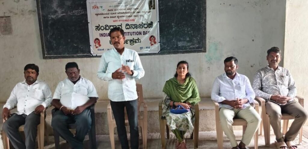ಬಳ್ಳಾರಿ / ಕಂಪ್ಲಿ: ಮೇರಾ ಯವ ಭಾರತ್ ಬಳ್ಳಾರಿ ಹಾಗೂ ಸ್ವಾಮಿ ವಿವೇಕಾನಂದ ಯೂತ್ ಅಸೋಸಿಯೇಷನ್, ಕಣ್ವಿತಿಮ್ಮಲಾಪುರ ಹಾಗೂ ವಿಕಾಸ ಕೈಗಾರಿಕಾ ಶಿಕ್ಷಣ ಸಂಸ್ಥೆ ಕಂಪ್ಲಿ ಇವರ ಸಂಯುಕಾಶ್ರದಲ್ಲಿ ಇಂದು ವಿಕಾಸ್ ಐ.ಟಿ.ಐ ಕಾಲೇಜಿನಲ್ಲಿ ಸಂವಿಧಾನ ದಿನಾಚರಣೆ ಕಾರ್ಯಕ್ರಮ ಸಸಿಗೆ ನೀರೆರೆಯುವದರ ಮೂಲಕ ಸ್ವಾಮಿ ವಿವೇಕಾನಂದ ಯೂತ್ ಅಸೋಸಿಯೇಷನ್ ಅಧ್ಯಕ್ಷ ಜಗದೀಶ್ ಪೂಜಾರ್ ಚಾಲನೆ ನೀಡಿದರು ನಂತರ ಮಾತನಾಡಿ ಭಾರತದ ಸಂವಿಧಾನ ಅತ್ಯಂತ ಶ್ರೇಷ್ಠ ಸಂವಿಧಾನ ಪ್ರಜಾಪ್ರಭುತ್ವ ವ್ಯವಸ್ಥೆಯಲ್ಲಿ ಪ್ರತಿಯೊಬ್ಬ ವ್ಯಕ್ತಿಗೂ ಸಂವಿಧಾನದಲ್ಲಿ ಸಮಾನತೆಗೆ ಅವಕಾಶವಿದೆ. ಡಾ. ಬಾಬ ಸಹೇಬ್ ಅಂಬೇಡ್ಕರ್ ಸಂವಿಧಾನ ರೂಪಿಸುವಲ್ಲಿ ಪ್ರಮುಖ ಪಾತ್ರ ವಹಿಸಿ ಸಂವಿಧಾನ ಶಿಲ್ಪಿ ಎಂದು ಬಿರುದನ್ನು ಪಡೆದವರು ಎಂದು ವಿದ್ಯಾರ್ಥಿಗಳಿಗೆ ತಿಳಿಸಿದರು. ಕಾರ್ಯಕ್ರಮದಲ್ಲಿ ಸಂವಿಧಾನ ಪೀಠಿಕೆ ಬೋದಿಸಲಾಯಿತು.ವಿಜಯ ಕರುನಾಡ ರಕ್ಷಣಾ ವೇದಿಕೆ ಮಹಿಳಾ ಘಟಕದ ಜಿಲ್ಲಾಧ್ಯಕ್ಷೆ ಬಿ.ಮಂಜುಳಾ ವೇದಿಕೆ ಮೇಲಿದ್ದ ಮಾತನಾಡಿದರು. ಶಿಕ್ಷಣ ಸಂಸ್ಥೆಯ ಪ್ರಾಂಶುಪಾಲರಾದ ಬಿ.ವೀರೇಶ ಹಾಗೂ ಸೋಮಪ್ಪ, ವಿರೇಶ ಎಮ್ಮಿಗನೂರು, ಸಿಬ್ಬಂದಿ ವೀರಭದ್ರ ಮುಂತಾದವರಿದ್ದರು.ವರದಿ : ಜಿಲಾನಸಾಬ್ ಬಡಿಗೇರ್