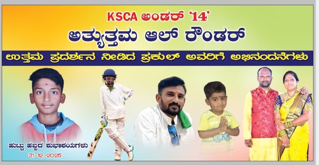 ಗಂಗಾವತಿ ತಾಲೂಕಿನ ಆಚಾರ ನರಸಾಪುರ ಗ್ರಾಮದ ಪ್ರಕುಲ್ ಎಂಬ ವಿದ್ಯಾರ್ಥಿ ಕೆ ಎಸ್ ಸಿ ಎ ಅಂಡರ್ 14 ಪಂದ್ಯಾವಳಿಯಲ್ಲಿ ಅತ್ಯುತ್ತಮ ಆಲ್-ರೌಂಡರ್ ನಲ್ಲಿ ಆಯ್ಕೆಗೊಂಡಿದ್ದಾನೆ 2025 ರಂದು ಬೆಂಗಳೂರಿನಲ್ಲಿ ಜರುಗಿದ ಅಂಡರ್ 14 ಕ್ರಿಕೆಟ್ ಪಂದ್ಯದಲ್ಲಿ ಅತ್ಯುತ್ತಮ ಆಲ್ ರೌಂಡರ್ ಪ್ರದರ್ಶನ ನೀಡಿ ಸಾಧನೆ ಮಾಡಿದ್ದಾರೆ ಆಚಾರ್ ನರಸಾಪುರ ಗ್ರಾಮದ KSCA ಅಂಡರ್.14. ದಲ್ಲಿ ಅತ್ಯುತ್ತಮ ಆಲ್ ರೌಂಡರ್ ನಲ್ಲಿ ಪ್ರದರ್ಶನ ಪ್ರಕುಲ್ ಅವರಿಗೆ ಅಭಿನಂದನೆಗಳು ಬೆಂಗಳೂರಿನಲ್ಲಿ ದಿನಾಂಕ 25-12-2025 ರಂದು ನಡೆದ ಅಂಡರ್ 14 ಕ್ರಿಕೆಟ್ ಪಂದ್ಯದಲ್ಲಿ ಅತ್ಯುತ್ತಮ ಆಲ್ ರೌಂಡರ್ ಪ್ರದರ್ಶನ ಪ್ರಕುಲ್ ಅವರಿಗೆ ಅಭಿನಂದನೆಗಳು ತಂದೆಯವರಾದ ಬದ್ರಿ ವಕೀಲರು ಶ್ರೀಮತಿ ಉಮಾ ಬದ್ರಿ ಚಿದಾನಂದ ಆಚಾರನರಸಾಪುರ ರಮೇಶ ನಾಯಕ ಮರಳಿ ಸಾಧನೆಗೆ ಗ್ರಾಮಸ್ಥರು ಸಮಾಜ ಬಾಂಧವರು ಹಾಗೂ ಸ್ನೇಹಿತರು ಅಭಿನಂದನೆಗಳನ್ನು ಸಲ್ಲಿಸುವುದರ ಜೊತೆಗೆ ಮುಂದಿನ ದಿನಗಳಲ್ಲಿ ರಣಜಿ ಕ್ರಿಕೆಟ್ ಪಂದ್ಯಾವಳಿಗೆ ಆಯ್ಕೆ ಆಗಲಿ ಎಂದು ಹರಿಸಿದ್ದಾರೆ.