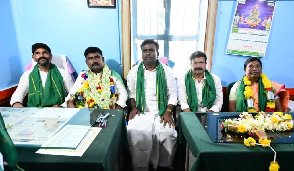 ಬಳ್ಳಾರಿ / ಕಂಪ್ಲಿ : ತೀವ್ರ ಕುತೂಹಲ ಕೆರಳಿಸಿದ್ದ ಕಂಪ್ಲಿ ತಾಲೂಕು ವ್ಯವಸಾಯೋತ್ಪನ್ನ ಮಾರಾಟ ಸಹಕಾರ ಸಂಘದ ಅಧ್ಯಕ್ಷ ಮತ್ತು ಉಪಾಧ್ಯಕ್ಷ ಸ್ಥಾನಕ್ಕೆ ಗುರುವಾರ ನಡೆದ ಚುನಾವಣೆಯಲ್ಲಿ ನೂತನ ಅಧ್ಯಕ್ಷರಾಗಿ ಕಡೆಮನೆ ನಾಗರಾಜ ಹಾಗೂ ಉಪಾಧ್ಯಕ್ಷರಾಗಿ ಜಿ.ಅಯ್ಯಮ್ಮ ಅವಿರೋಧವಾಗಿ ಆಯ್ಕೆಗೊಂಡರು.ಇಲ್ಲಿನ ಸಂಘದ ಕಛೇರಿಯಲ್ಲಿ ಅಧ್ಯಕ್ಷ ಮತ್ತು ಉಪಾಧ್ಯಕ್ಷ ಸ್ಥಾನಕ್ಕೆ ಚುನಾವಣೆ ನಡೆಯಿತು. ಈ ಚುನಾವಣೆ ಪ್ರಕ್ರಿಯೆಯಲ್ಲಿ ಅಧ್ಯಕ್ಷ ಸ್ಥಾನಕ್ಕೆ ಕಡೆಮನೆ ನಾಗರಾಜ ಮತ್ತು ಉಪಾಧ್ಯಕ್ಷ ಸ್ಥಾನಕ್ಕೆ ಜಿ.ಅಯ್ಯಮ್ಮ ಇವರು ತಲಾ ಒಬ್ಬರೇ ನಾಮಪತ್ರ ಸಲ್ಲಿಸಿದ ಹಿನ್ನಲೆ ಅಧ್ಯಕ್ಷ ಮತ್ತು ಉಪಾಧ್ಯಕ್ಷರಾಗಿ ಆಯ್ಕೆಗೊಂಡಿದ್ದಾರೆಂದು ರಿಟರ್ನಿಂಗ್ ಅಧಿಕಾರಿ ರಾಮು ಘೋಷಿಸುವ ಜೊತೆಗೆ ಸಹಕಾರ ಸಂಘದ ಅಭಿವೃದ್ಧಿಗೆ ಮುಂದಾಗಬೇಕು ಎಂದರು.ಚುನಾವಣೆ ಪ್ರಕ್ರಿಯೆ ವೇಳೆ ಸಹಾಯಕ ರಿಟರ್ನಿಂಗ್ ಅಧಿಕಾರಿ ರಮೇಶ, ಮುಖ್ಯಕಾರ್ಯನಿರ್ವಾಹಕ ಕೆ.ವಿರೇಶ, ನಿರ್ದೇಶಕರಾದ ಕೆ.ಭಾಸ್ಕರ್ ರೆಡ್ಡಿ, ಗೌಡ್ರು ಅಂಜಿನಪ್ಪ, ಎನ್.ಆಂಜನೇಯಲು, ವಿ.ಬಿ.ನಾಗರಾಜ, ಅರಳೆ ಮುತ್ತಯ್ಯ, ಹನುಮಂತಪ್ಪ ಕುರುಬರು, ಕೆ.ರಾಧಾ, ಟಿ.ರಾಮು, ಕೆ.ದೊಡ್ಡಬಸಪ್ಪ, ಅಳ್ಳಿ ನಾಗರಾಜ, ಪಿ.ಚೊಕ್ಕರಾವ್, ನಾಮ ನಿರ್ದೇಶಿತ ಸದಸ್ಯ ಬಳ್ಳಾಪುರ ಲಿಂಗಪ್ಪ ಇದ್ದರು. ನಂತರ ನೂತನ ಅಧ್ಯಕ್ಷ ಮತ್ತು ಉಪಾಧ್ಯಕ್ಷರಿಗೆ ಶಾಸಕ ಜೆ.ಎನ್.ಗಣೇಶ ಹಾಗೂ ಜನಪ್ರತಿನಿಧಿಗಳು, ಮುಖಂಡರು ಸನ್ಮಾನಿಸಿ ಅಭಿನಂದಿಸಿದರು.ಈ ಸಂದರ್ಭದಲ್ಲಿ ಕಂಪ್ಲಿ ಬ್ಲಾಕ್ ಕಾಂಗ್ರೆಸ್ ಅಧ್ಯಕ್ಷ ಕೆ.ಶ್ರೀನಿವಾಸರಾವ್, ಮುಖಂಡರಾದ ಪಿ.ಮೂಕಯ್ಯಸ್ವಾಮಿ, ಕಡೆಮನೆ ಪಂಪಾಪತಿ, ಅಳ್ಳಳ್ಳಿ ವಿರೇಶ, ವೆಂಕಟರಾಮರಾಜು, ಕೆ.ಷಣ್ಮುಕಪ್ಪ, ಹೊಸಕೋಟೆ ಜಗದೀಶ, ದೊಡ್ಡಬಸಪ್ಪ, ಶರಣಪ್ಪ, ಮಾರೇಶ, ಜಿ.ಮಲ್ಲಿಗೌಡ ಸೇರಿದಂತೆ ಜನಪ್ರತಿನಿಧಿಗಳು, ಮುಖಂಡರು ಹಾಗೂ ಸಿಬ್ಬಂದಿ ಇದ್ದರು.