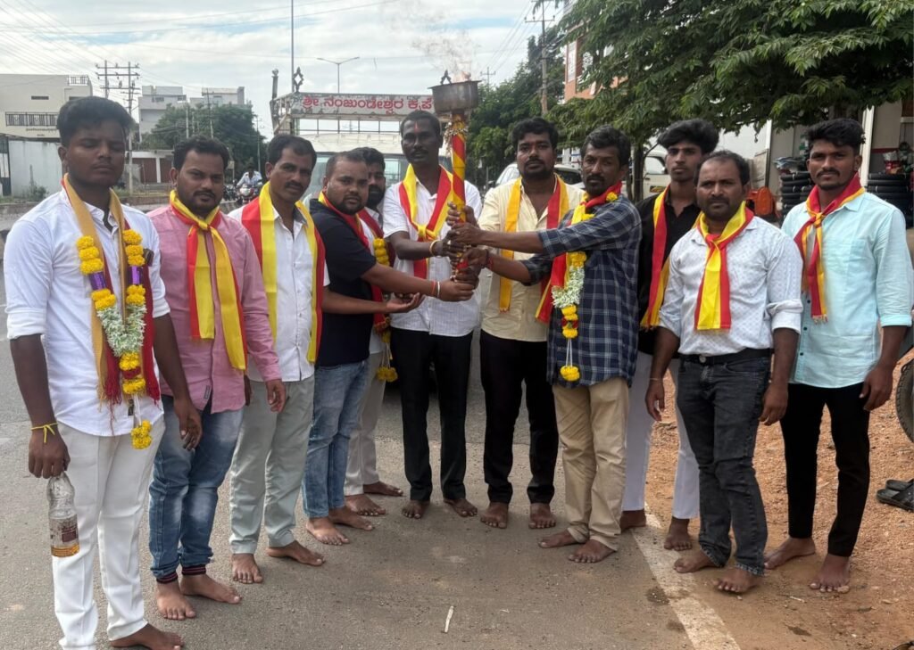 ತಾಯಿ ಭುವನೇಶ್ವರಿ ಜ್ಯೋತಿ ಸ್ವಾಗತಿಸಿದ ತಾಲೂಕು ಅಧ್ಯಕ್ಷ ಸಿ.ಡಿ.ರಾಜಶೇಖರ..